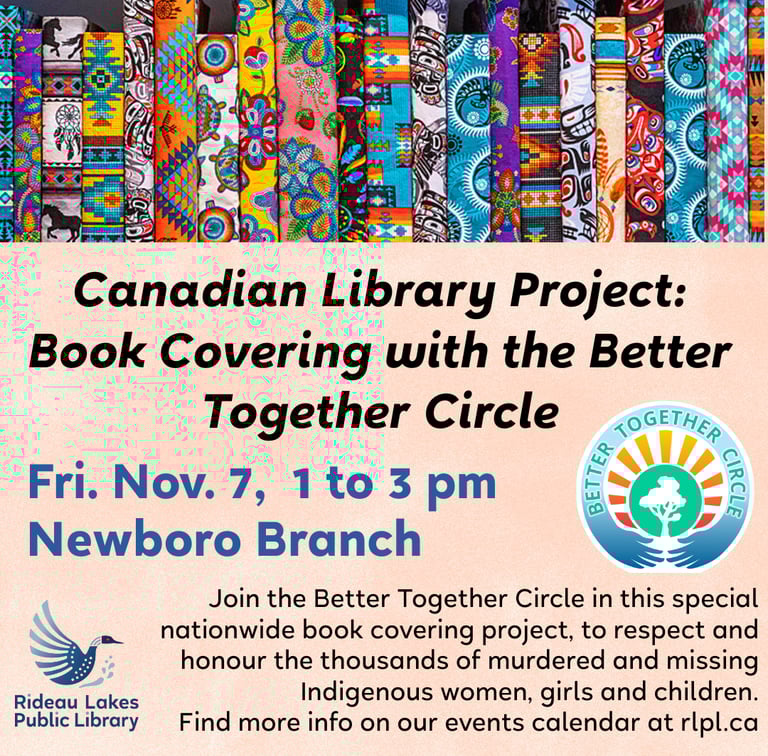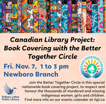 BTC has joined The Canadian Library (TCL) Project https://www.thecanadianlibrary.ca/ to honour and bring attention to Murdered and Missing Indigenous Women, Girls and TwoSpirit (MMIWG2S). This national project, launched in 2021, consists of communities creating an art installation together as a memorial to the 8000 murdered and missing Indigenous women, girls and 2S. The TCL project supports the building of micro galleries of books bound in Indigenous-designed textiles, with the names of those lost in gold on the spines of the bound books. Some books will remain nameless to represent those who may never have a chance to tell their story. The project, guided by Indigenous elders, reflects our shared commitment as Canadians to teach the truth about our history and move towards healing. The names that will be placed on the books have been shared by elders and families with the desire to have the stories told and the lives honoured. Our micro galleries will be displayed publicly and locally until all the micro galleries come together in a prominent place for permanent exhibition.